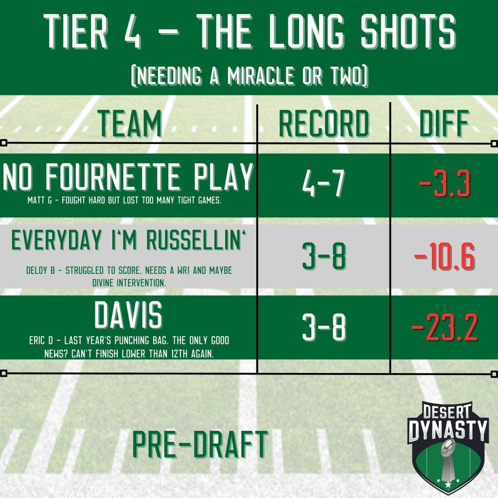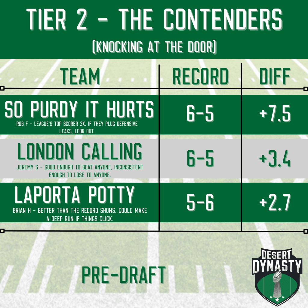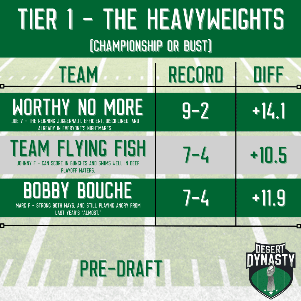 The 2025 Desert Dynasty League Pre-Draft Power Rankings are here, and the tiers have never been more sharply defined. Last season’s final standings gave us plenty to chew on, from dominant regular-season performances to hard-luck heartbreakers.